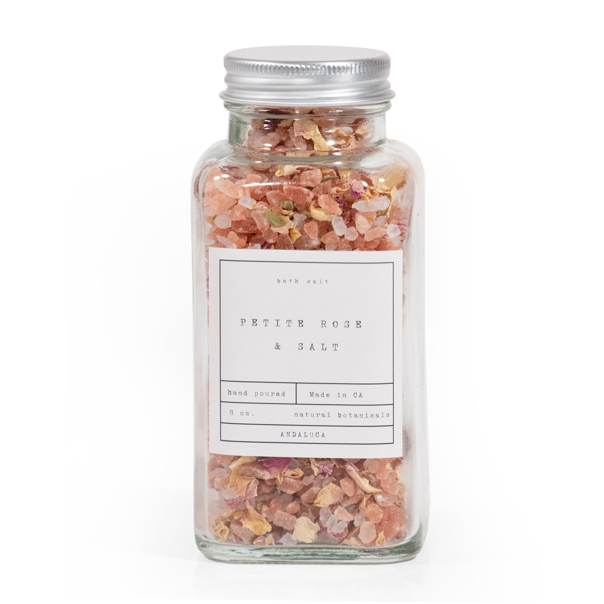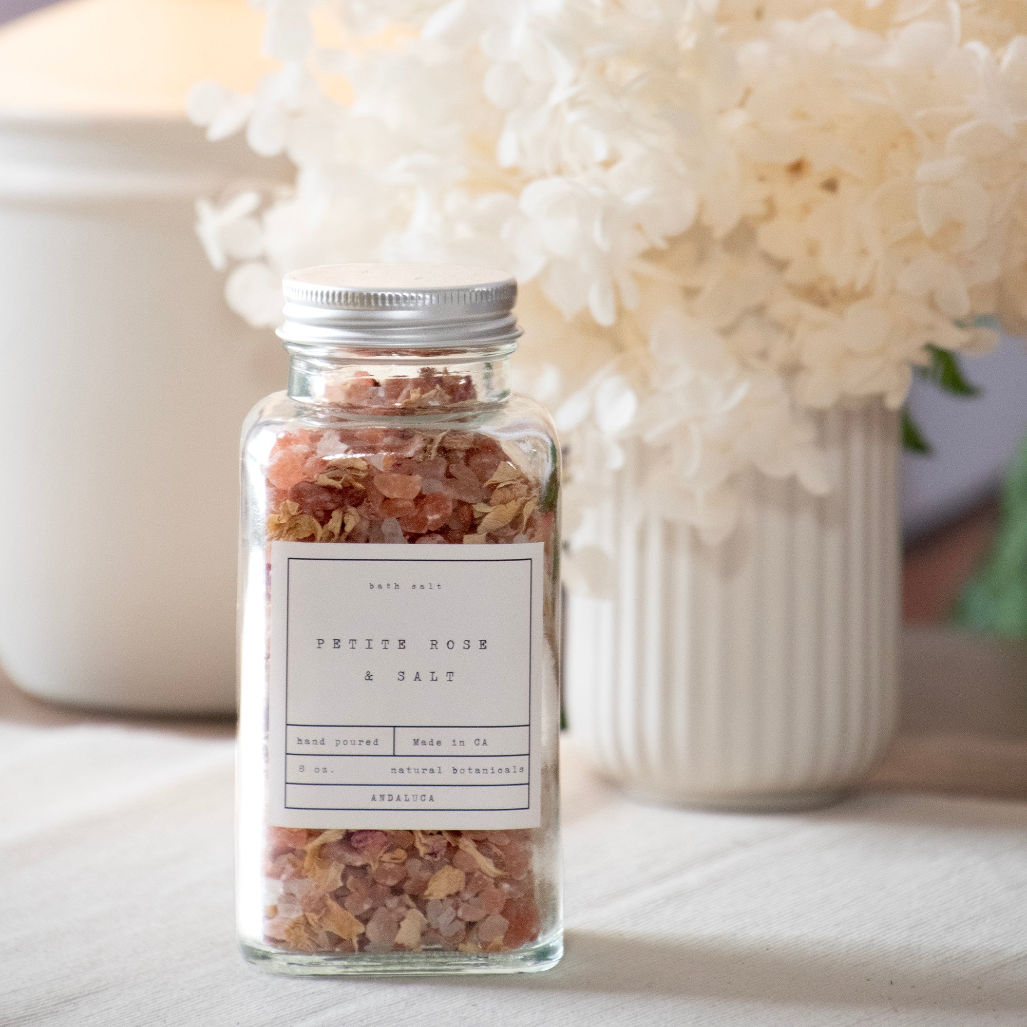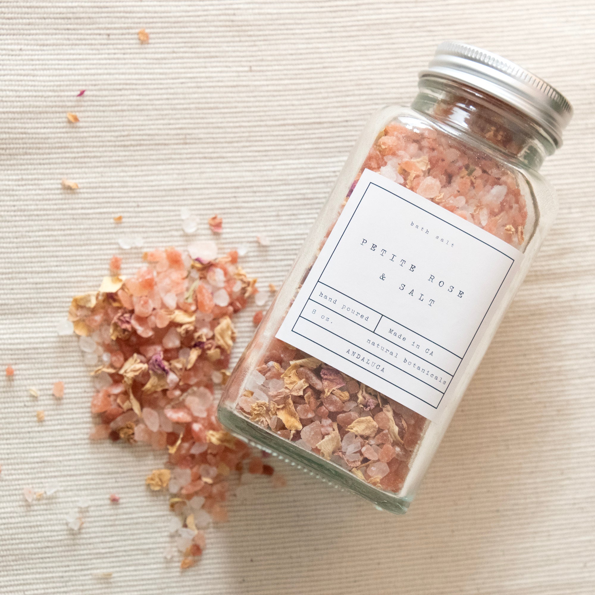 Our Petite Rose Petal Bath Salt is a natural and luxurious treat! Each glass apothecary jar is filled to the brim with a mix of natural petite rose bud petals and salt to create the perfect, relaxing soak for your bath.